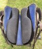 Short Back (20") base, seat size 17". Chocolate Brown, seat has suede on back of cantle. 2" biothane leathers, EasyCare endurance stirrups. Very lightweight setup. Velcro on base is frazzled but adheres well. Velcro for panels added by local saddler. Some cosmetic scratches, nothing affecting function. Please ask any questions, or request more photos!